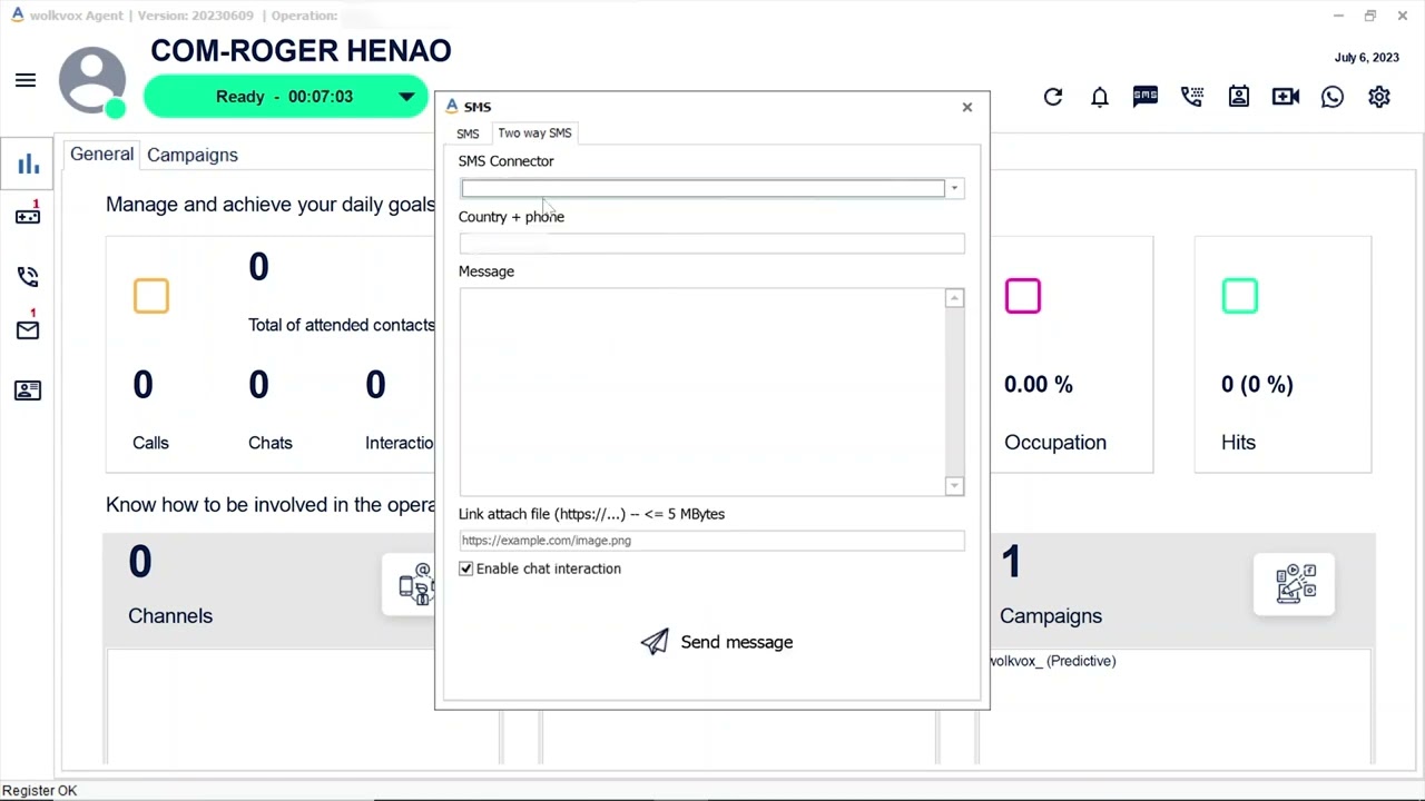 8. Sending outbound SMS - Getting started with: wolkvox Agentbox