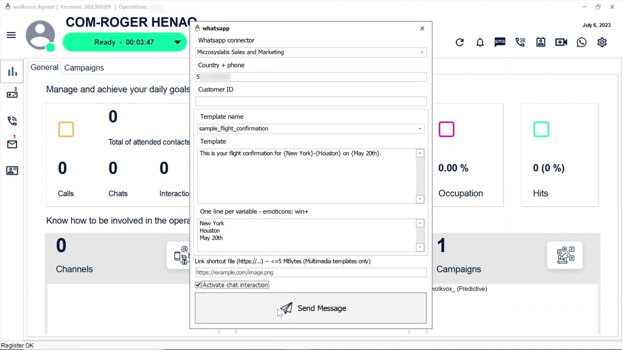 7. Sending outbound WhatsApp messages - Getting started with: wolkvox Agentbox